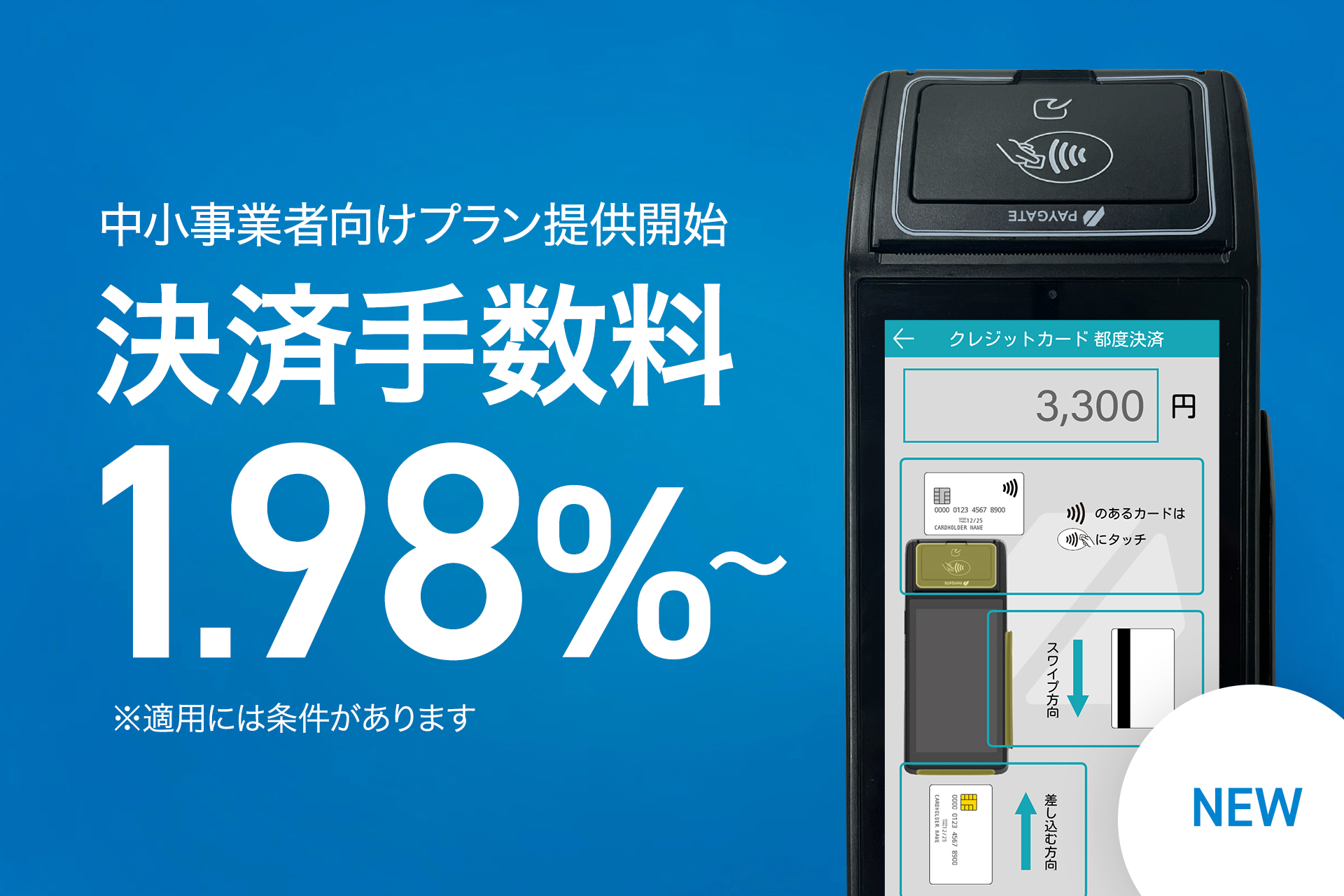 従来の基本プランに対し、中小事業者向けにキャッシュレス導入促進のため、クレジットカード決済手数料を1.98%~に引き下げた店舗さまの負担を大幅に軽減できるプランです。